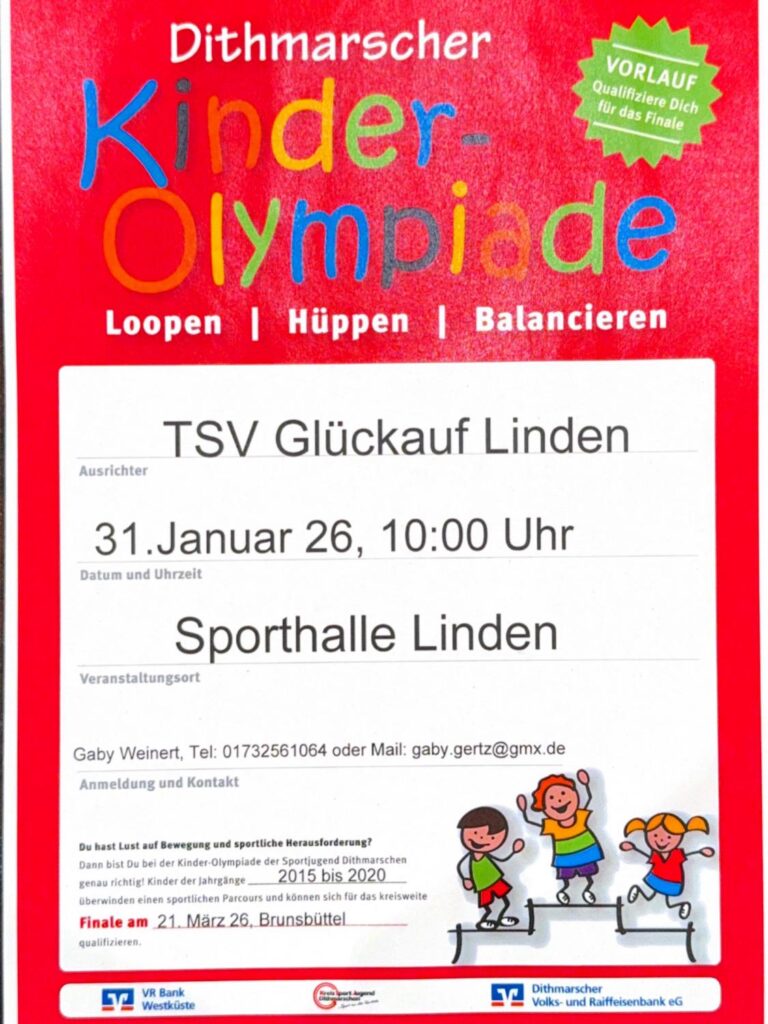 Der TSV Glückauf Linden ist Ausrichter der Dithmarscher Kinder-Olympiade.