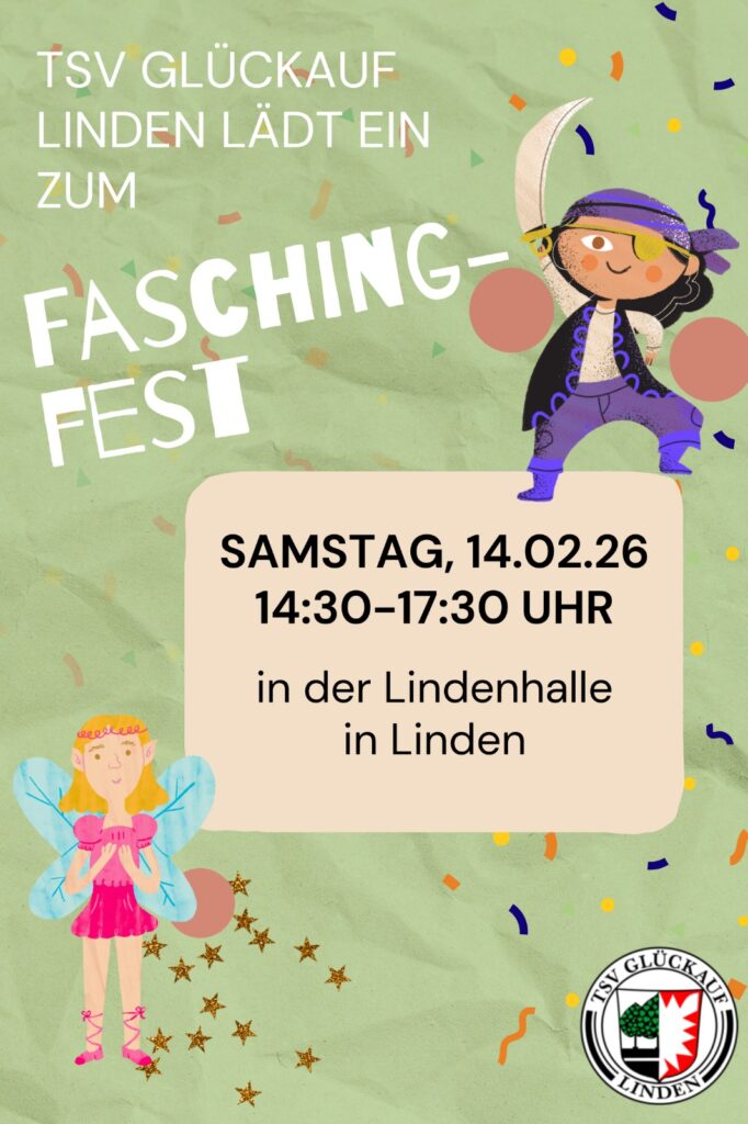Der TSV Glückauf Linden lädt herzlich zum Faschingsfest ein.