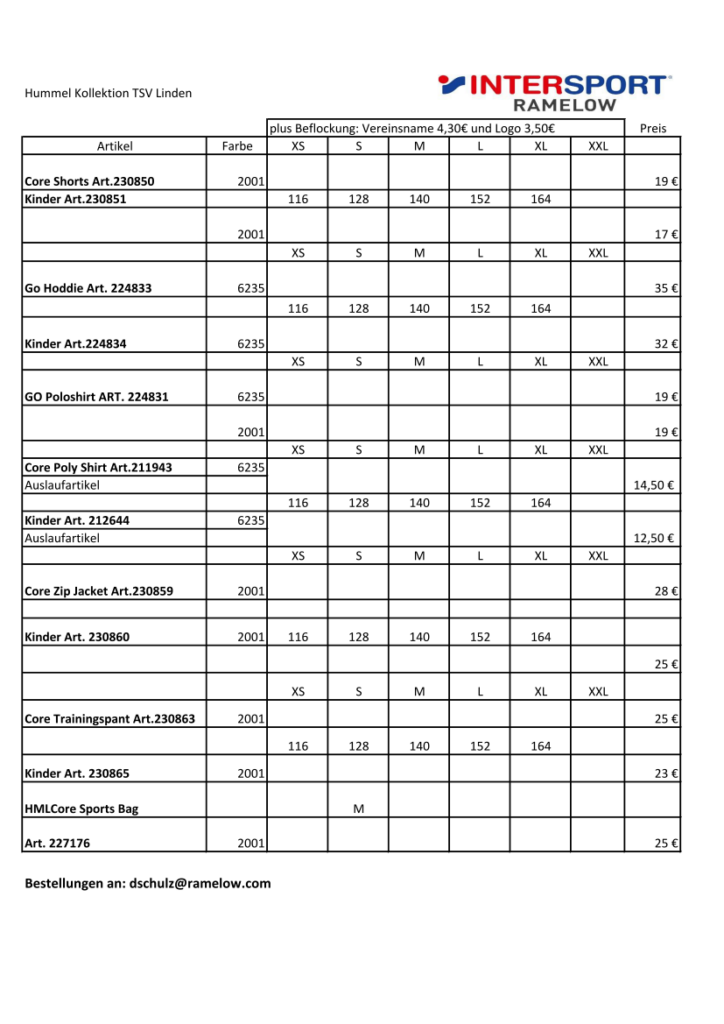 Vereinskollektion Bestellungen an: dschulz@ramelow.com oder direkt bei Ramelow in Heide vor Ort Vereinskleidung TSV LindenHerunterladen